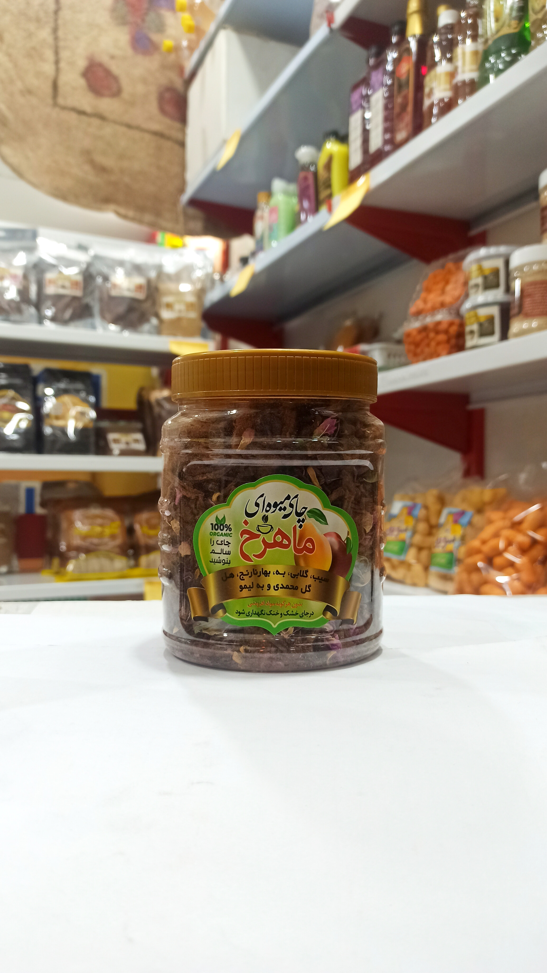 این دمنوش از میوه های سیب، به و گلابی فراوری شده که بصورت خشک با ادویه های معطر و همچنین برگ گل سرخ و بهار نارنج ترکیب شده و با فرمول منحصر بفرد و طبق تحقیقات انجام شده بر پایه طعم و خواص و فرهنگ اصیل و بومی این سرزمین کهن تهیه گردیده است.